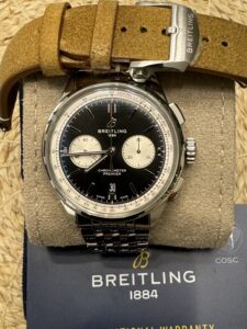 Upeassa kunnossa olevan Breitlingin huippulaite. Kellon koko on 42mm ja se kestää 10 ATM (100m) paineen. Kellon sisällä tikkaa B01-automaattikoneisto, jolla on 70 tunnin käyntivara. Kellosta löytyy päivyrin lisäksi chrono, eli ajanotto-toiminto. Alkuperäisen 7-rivisen teräsrannekeen lisäksi kelloon on ostettu Breitlingin oma nahka-ranneke linkkulukolla.