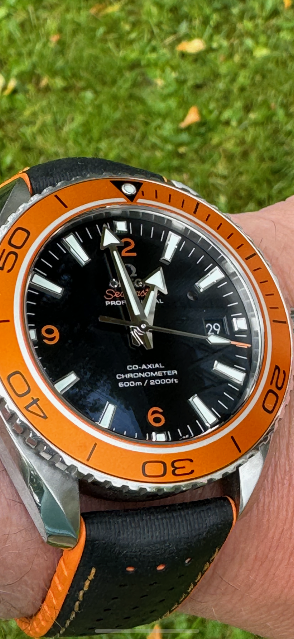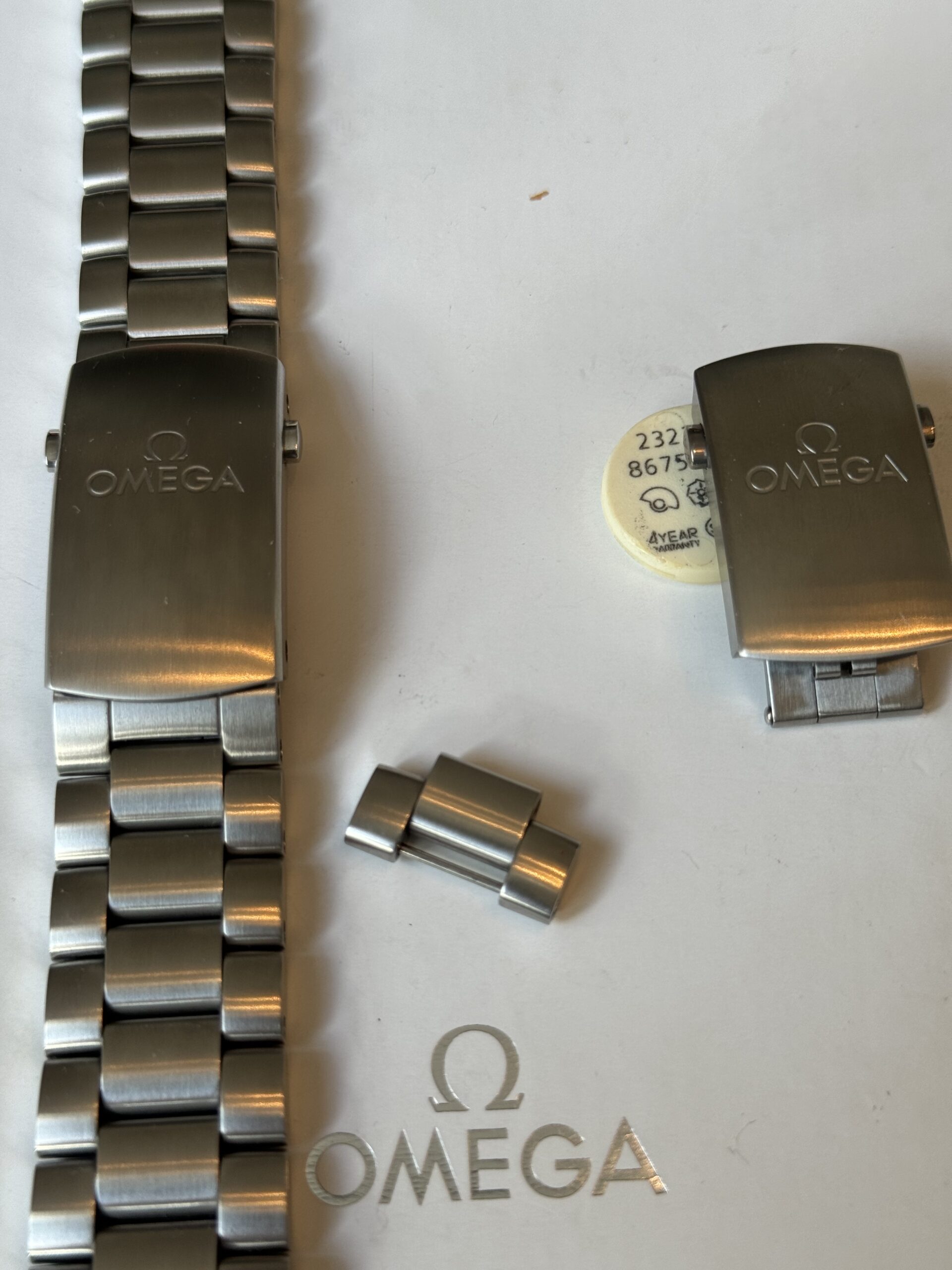 Kellon on uutena ostanut suomalainen harrastaja Karibian risteilyltä. Kellon koko on 45,5mm, mutta se istuu kiinni olevan Hirsc-kumirannekeen kanssa hienosti normaaliin ranteeseen. Mukaan tulee myös alkuperäinen teräsranneke, johon on vaihdettu Omegan glide-ominaisuudella varustettu lukko. Lukolla voi säätää näppärästi rannekkeen pituutta reilulla sentillä. Alkuperäinen lukko tulee myös mukaan. Ranneke riittää isompaankin ranteeseen.