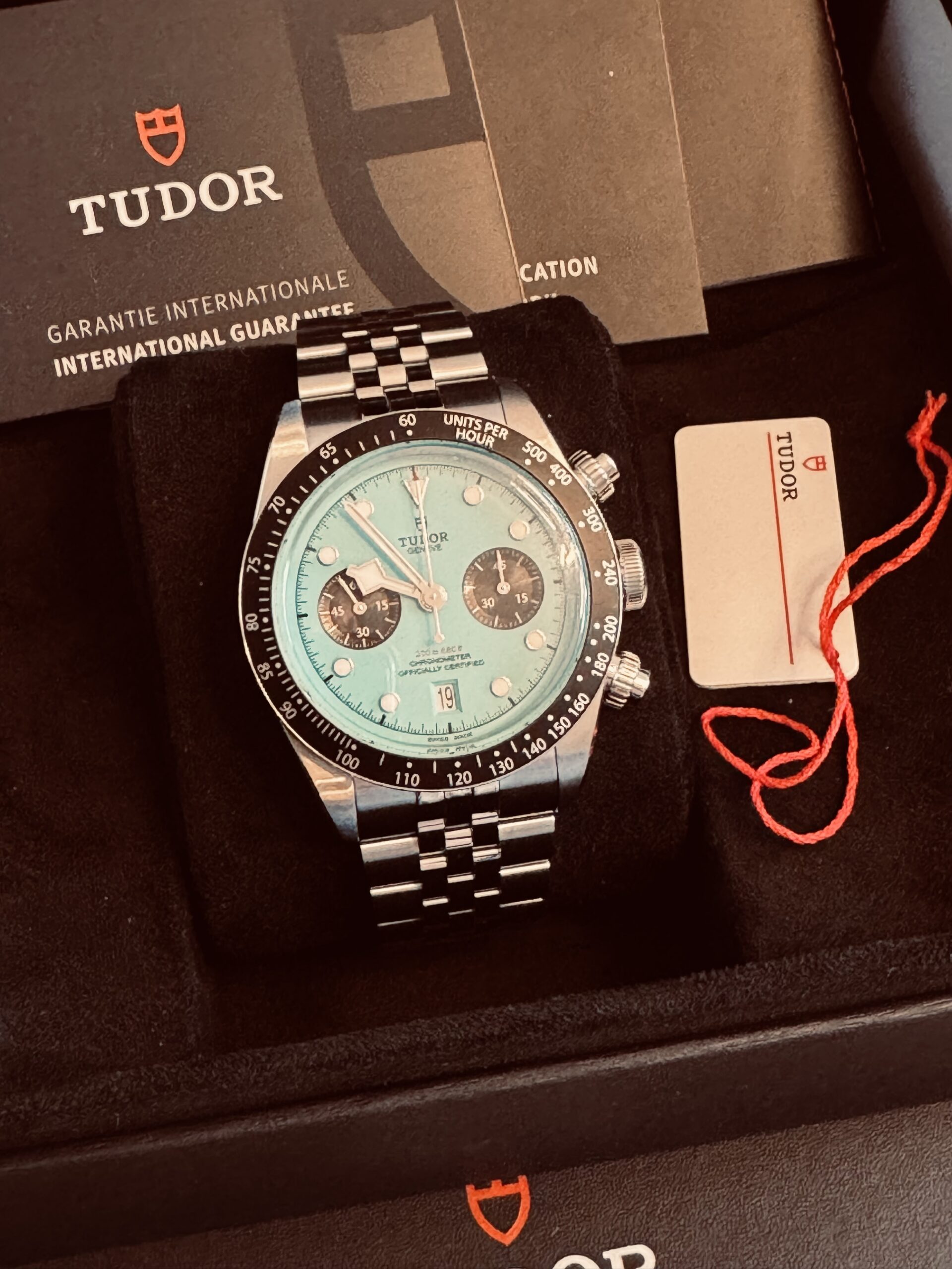 Tudor Black Bay Chronograph “Flamingo Blue” ref.79360N, full set vuodelta 2025.